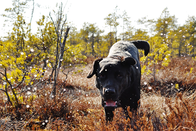 Arkitottiksen ja lenkkeilyn lisäksi emme ole juuri tehneet kummempia. Mitä nyt aktivointimielessä harjoiteltu edelleen temppuja ja ajettu harvakseltaan myös jälkeä. Odotan kovasti, että pääsen uittamaan Norppaa ja teettämään sillä vesinoutoja, kunhan ilmat tästä vielä vähän lämpenevät. Kintereidensä takia en halua juoksuttaa sitä damien perässä enää maalla (edes pehmeällä suoalustalla).