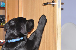 Olemme toistaiseksi etsineet vain makupaloja ja avaimia sekä ulkona satunnaisesti ihmistä. Norppa osaa yhdistää etsi-sanan oikeaan toimintaan, mutta pentu luottaa enemmän silmiinsä ja korviinsa kuin kirsuunsa. Nenän käyttö on kuitenkin lisääntynyt koko ajan tasaisesti. Avaimet Norppa merkkaa hienosti istumalla ja tuijottamalla avainnippua. Minulla itselläni on kova hinku päästä kokeilemaan Norpan kanssa jäljestystä keväämmällä.