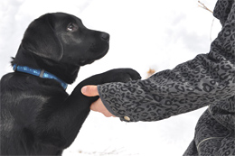 Tarkoitukseni oli käyttää irti-käskyä vain, kun haluan suussa olevan esineen käteeni. Irti-huudahdus tulee kuitenkin multa niin luonnostaan, että Norppa on oppinut pudottamaan suussaan olevan esineen maahan tai jopa jättämään maassa olevan esineen rauhaan. Toimivuus vaihtelee tälläkin käskyllä: Kepit ja roskat alkavat olla vanha juttu, joten niistä maltetaan luopua suosiolla. Ruuanjämät ja hanskat ovat sen sijaan niin kiva juttu, että tarjolla oleva herkkupalkkiokin jää toiseksi.