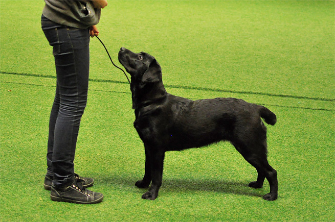 11 mån gammal svart tik valp av god kvalitet. Bra huvud, trevligt uttryck. Bra kroppsbyggnad men något hög. Goda vinklar. Korrekt päls. Rör sig mycket bra. Vålvisad. Trevligt temperament. Glad.