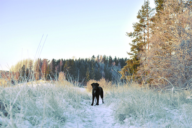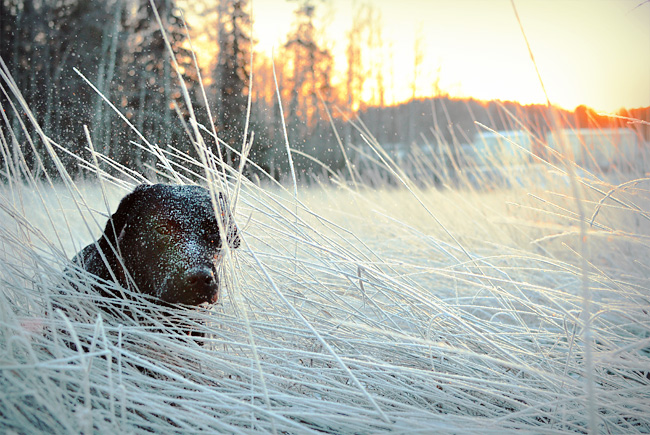 Norppa tutuu touhottavan myös ulkona aiempaa enemmän. Norppa viihdyttää itseään mm. heittelemällä kiviä ja ryntäilemällä niiden perään, rikkomalla jäätä onnessaan ja kiskomalla oksia/pieni puita irti. Kyllä se ennenkin hepuloi ja touhusi kaikkea edellä mainittua jo ennen leikkaustakin, mutta meininki on kyllä lisääntynyt irtopalojen poiston jälkeen. Norppa käy myös aiempaa useammin oma-aloitteisesti luonani ulkoilun aikana. Se on aivan täpinöissään, jos temme esimerkiksi lyhyitä seuraamispätkiä kesken lenkin.